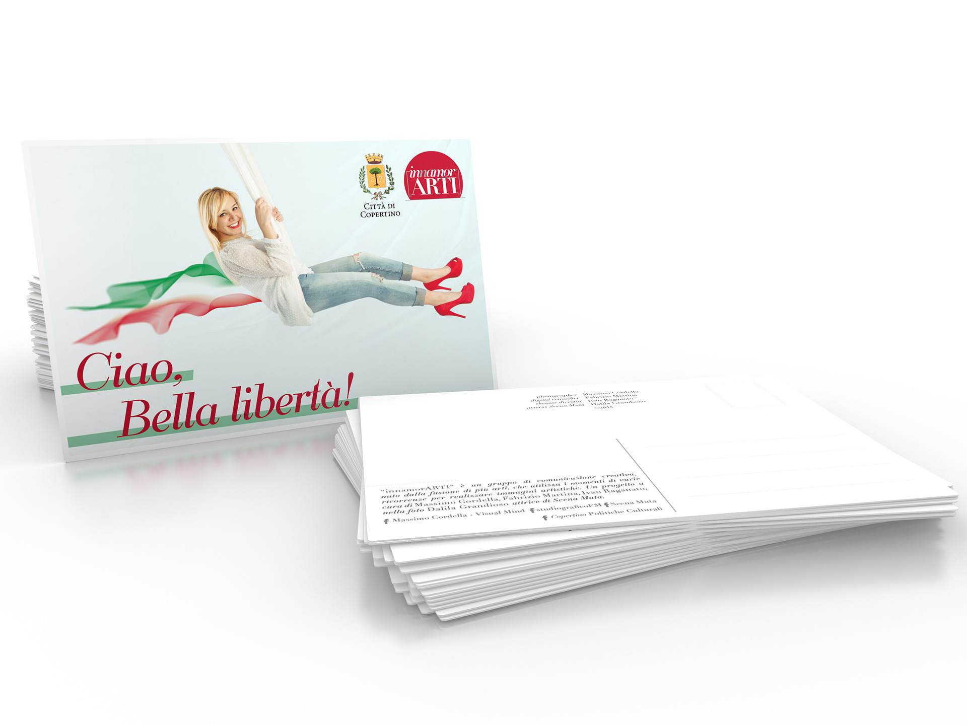 “innamorARTI” è un gruppo di comunicazione creativa, nato dalla fusione di più arti, che utilizza i momenti di varie ricorrenze per realizzare immagini artistiche. Un progetto a cura di Massimo Cordella, Fabrizio Martina, Ivan Raganato; nella foto Dalila Grandioso attrice di Scena Muta.